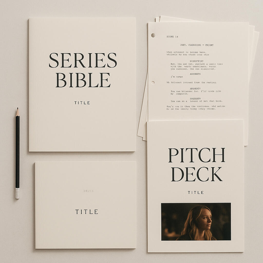 We work with words, structure, and design to create materials that speak the language of the industry—without losing the soul of the project.Whether you’re at the concept stage or already holding a draft, we tailor every document to match your story’s potential and your professional goals.Here’s what we offer:
